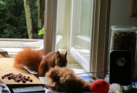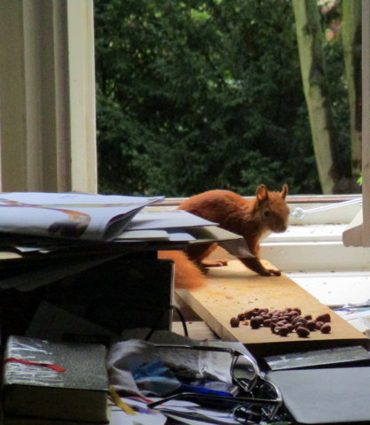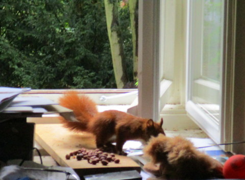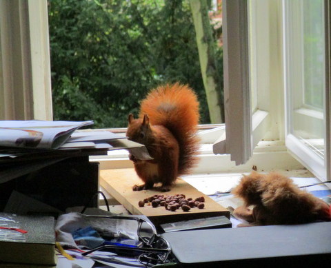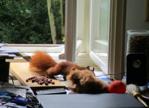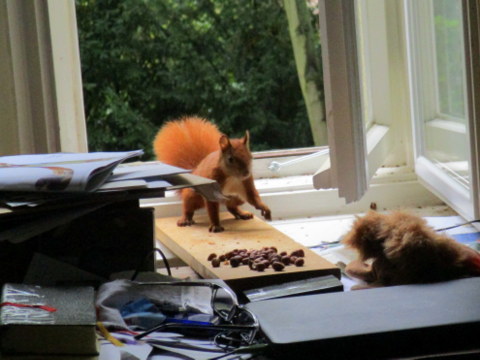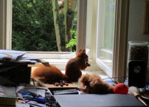Das wuschelige Ding auf dem Schreibtisch ist auch ein Hörnchen, wie man hier sieht. Ein handzahmes!