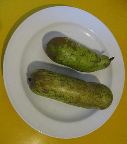 Bei Sirplus erstand ich sehr günstig Birnen – hervorragende, süße, makellose Birnen. Sie sehen nur komisch aus und sind deshalb im normalen Handel nicht verkäuflich.