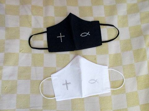 Eine liebe Freundin schickte mir diese Masken mit Kreuz und Ichthys: