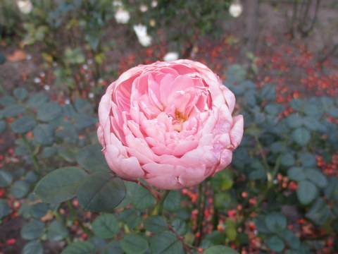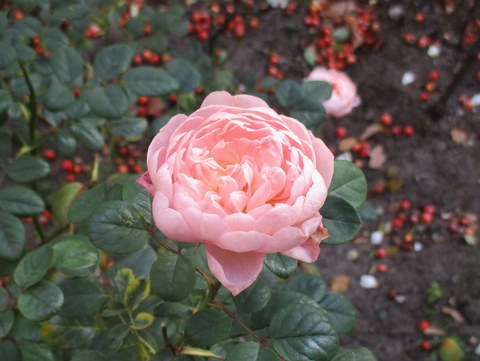 Die Rundbeete vor der Kirche sind immer noch schön mit Knospen, Blüten und Früchten.