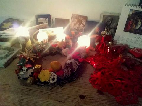Wenigstens ein unscharfes Tablet-Photo vom Adventskranz kann ich noch liefern. Denn leider ist das für das Hochladen von Bildern notwendige Kabel kaputt, so daß ich derzeit zwar mit meiner guten Kamera nach Herzenslust knipsen, aber die Bilder nicht veröffentlichen kann. Und wegen Lockdown bleibt das jetzt auch erstmal so. Gelobt sei das Tablet!