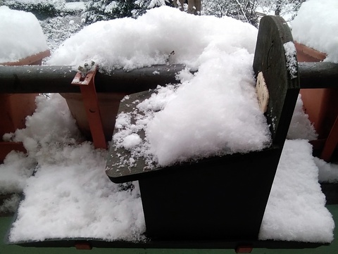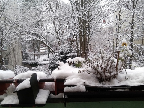 Von dem Vorfall oder den Schneemännern habe ich kein Bild. Aber von meinem zauberisch verschneiten Balkon.