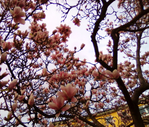 Die riesenhafte Magnolie auf dem Schillerplatz blüht – immer wieder spektakulär.
