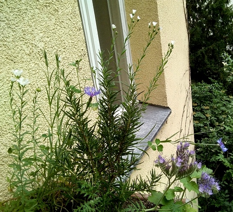 Anfang des Jahres bekam ich eine Samentüte für bienenfreundliche Blumen. Und dann war noch einiges andere auf dem Balkon. Insekten-, nasen-, augen- und teilweise auch gaumenfreundlich!