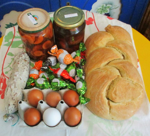 Heute mittag wurden die Osterspeisen gesegnet. Heute abend, nach der Feier der Osternacht, werde ich zum ersten Mal davon essen. Bis dahin: Angucken, freuen, aber nicht mehr!