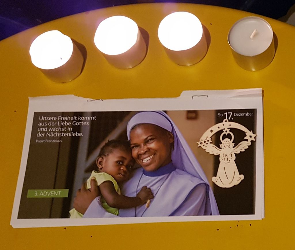 Drei Kerzen brennen, und wie sanfte Töne schwingen,
