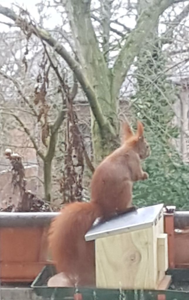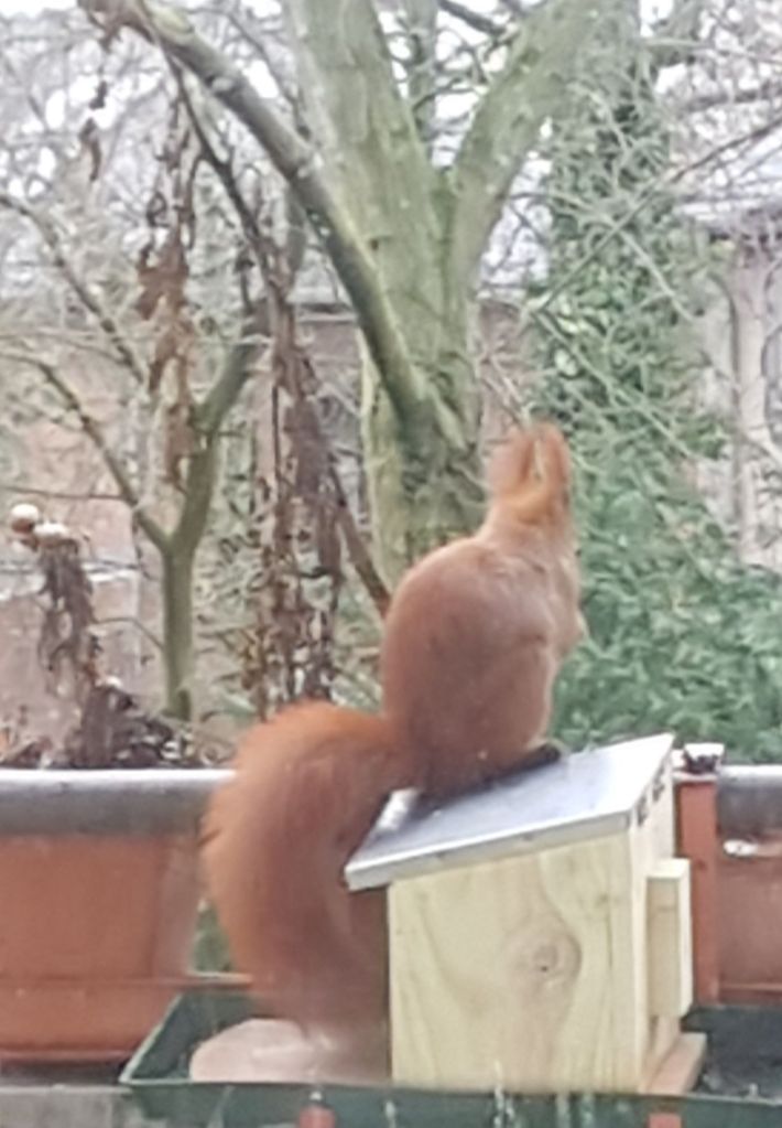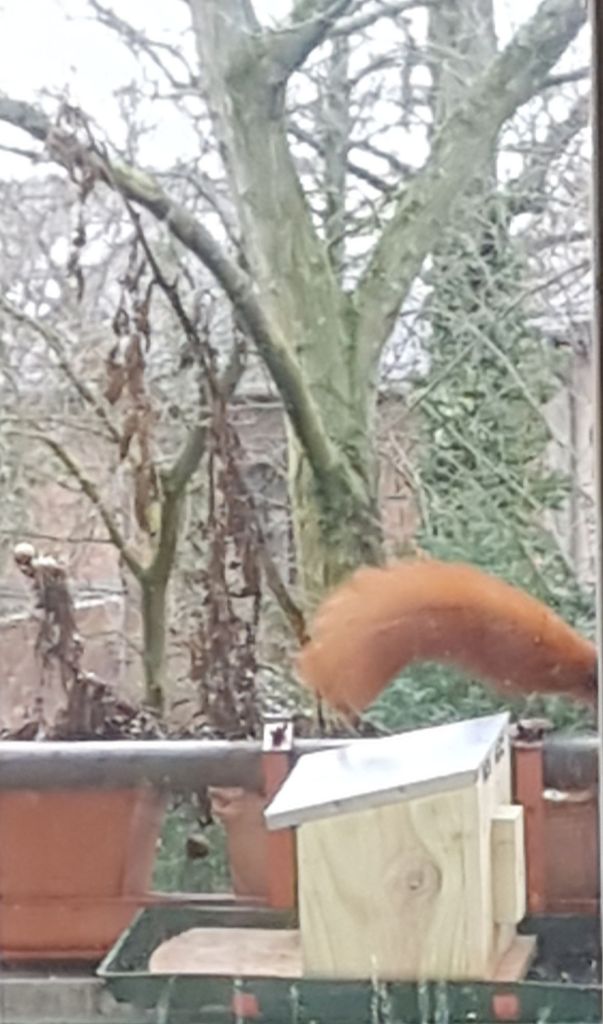 Das Futterhäuschen ist sehr nötig in dieser Zeit! Knipsen konnte ich leider nur durch geschlossene und ungeputzte Fenster.