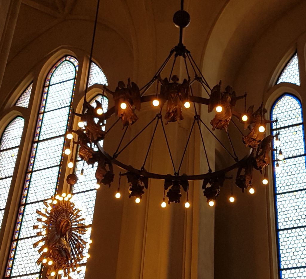 Besonders bemerkenswert: die Glorienscheine Jesu und Mariä sind elektrisch betrieben, ebenso die von Engeln gehaltenen Leuchter – und zwar etwa seit 1916!