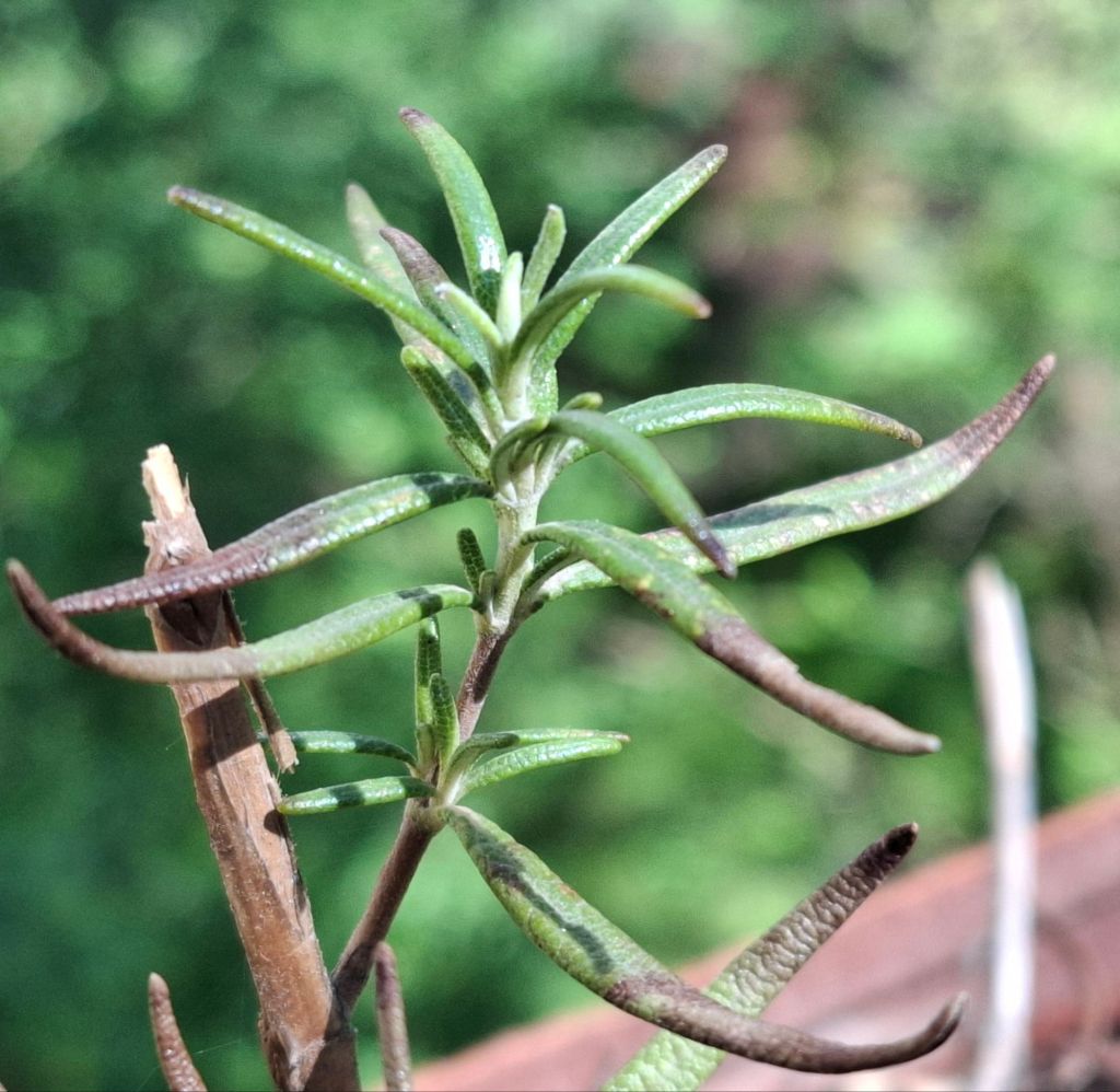 Der Salbei gedeiht gut, nachdem ich ihn den Winter über ignoriert habe. Der Rosmarin hat mir die Vernachlässigung übel genommen, aber auch er treibt aus.