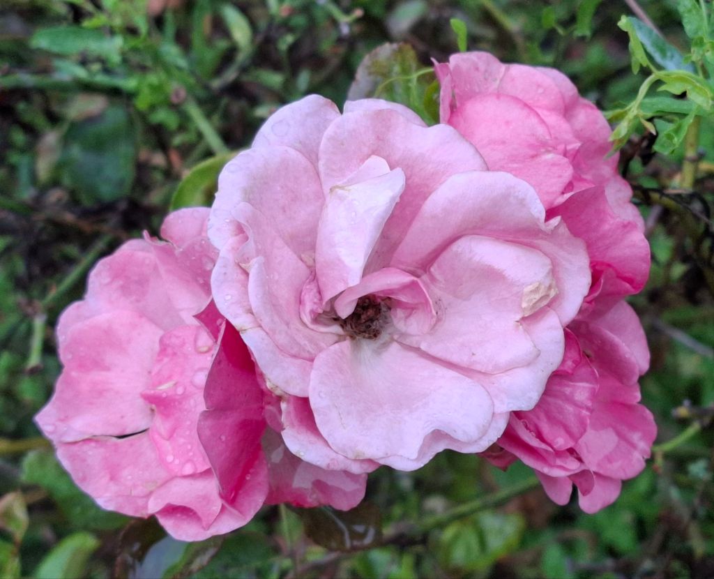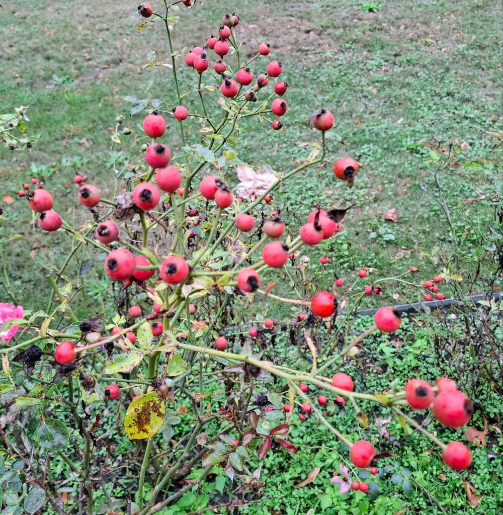 Auf dem Augustaplatz blühen sie ein halbes Jahr lang. Und Hagebutten gibt es nun auch.