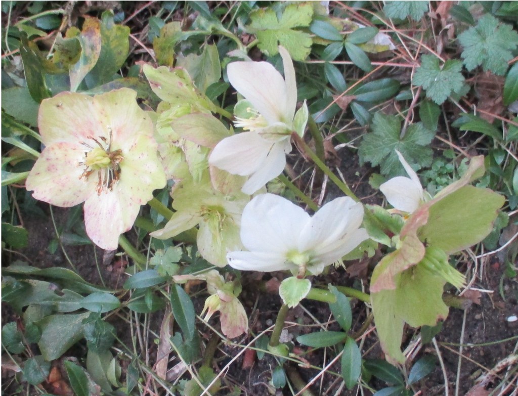 Die Christrose (Helleborus niger) blüht langsam ihrem Ende entgegen, sie wird beim Verblühen grünlich mit rosa Flecken.