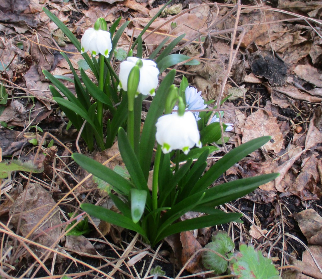 Märzbecher (auf die warte ich immer besonders) und Blaustern (eine sehr hellblaue Sorte).
