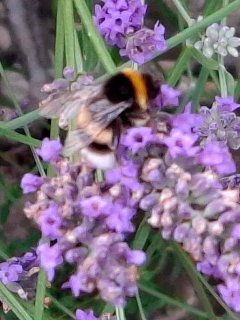 Sie sind völlig versessen auf Lavendel: verschiedene Wildbienen (genauer kann ich es nicht bestimmen). Und glücklicherweise gibt es Lavendel hier im Kiez recht viel, nicht nur vor meinem Haus.