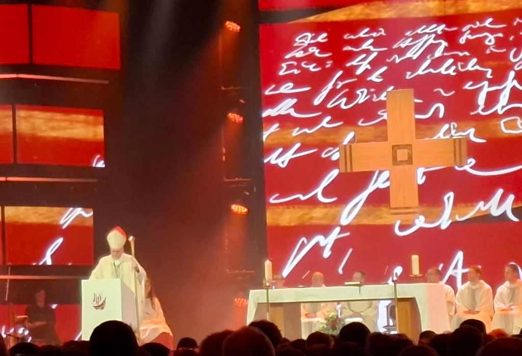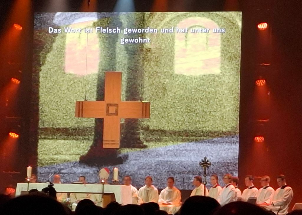 Am zweiten Tag der MEHR, am Sonntag, war die Messe mal wirklich gut besucht – zwei- bis dreitausend Gläubige! Schöne Musik, liebevolle und fromme Atmosphäre, würdig und recht zelebrierte Messe – und der Herr mittendrin! Und da sie nachmittags stattfand, hatte ich kein Problem, pünktlich zu sein.