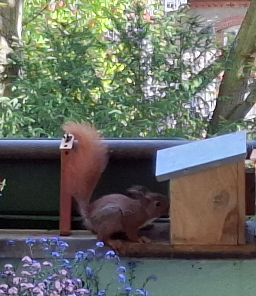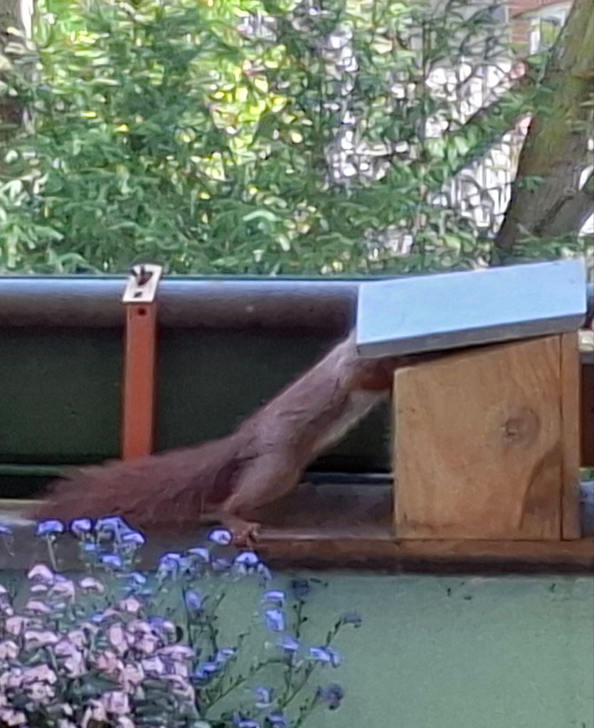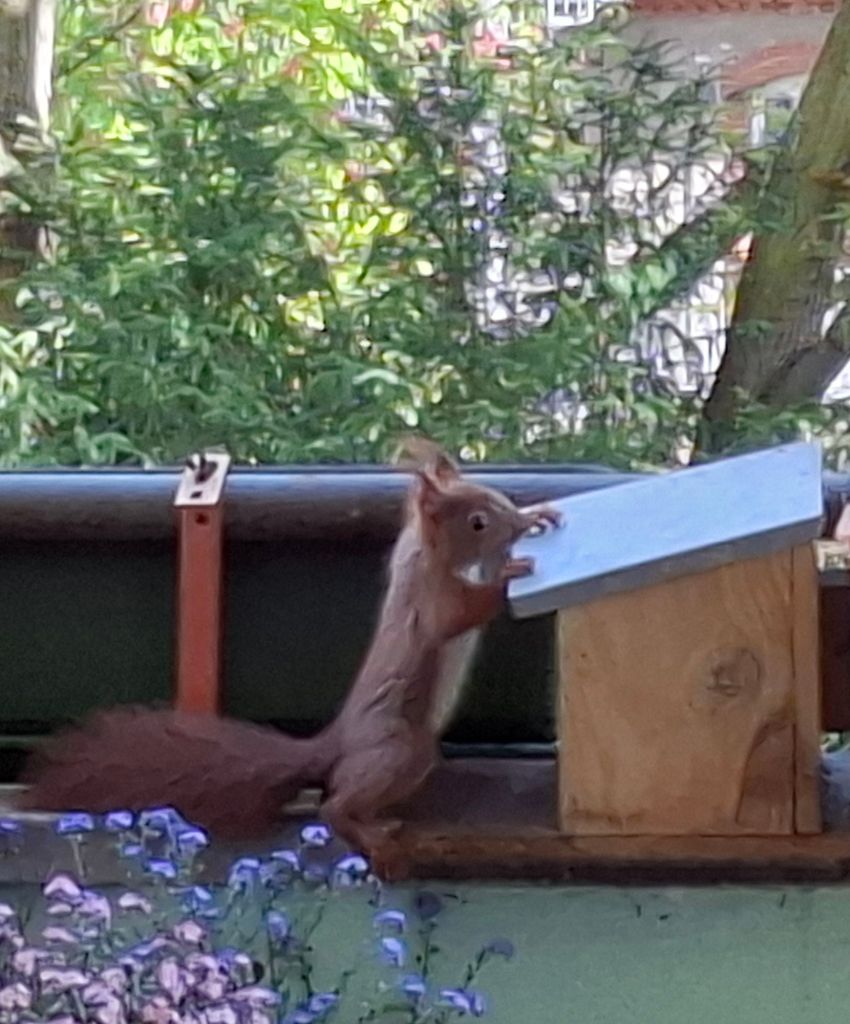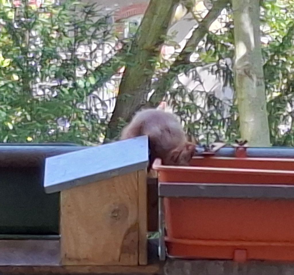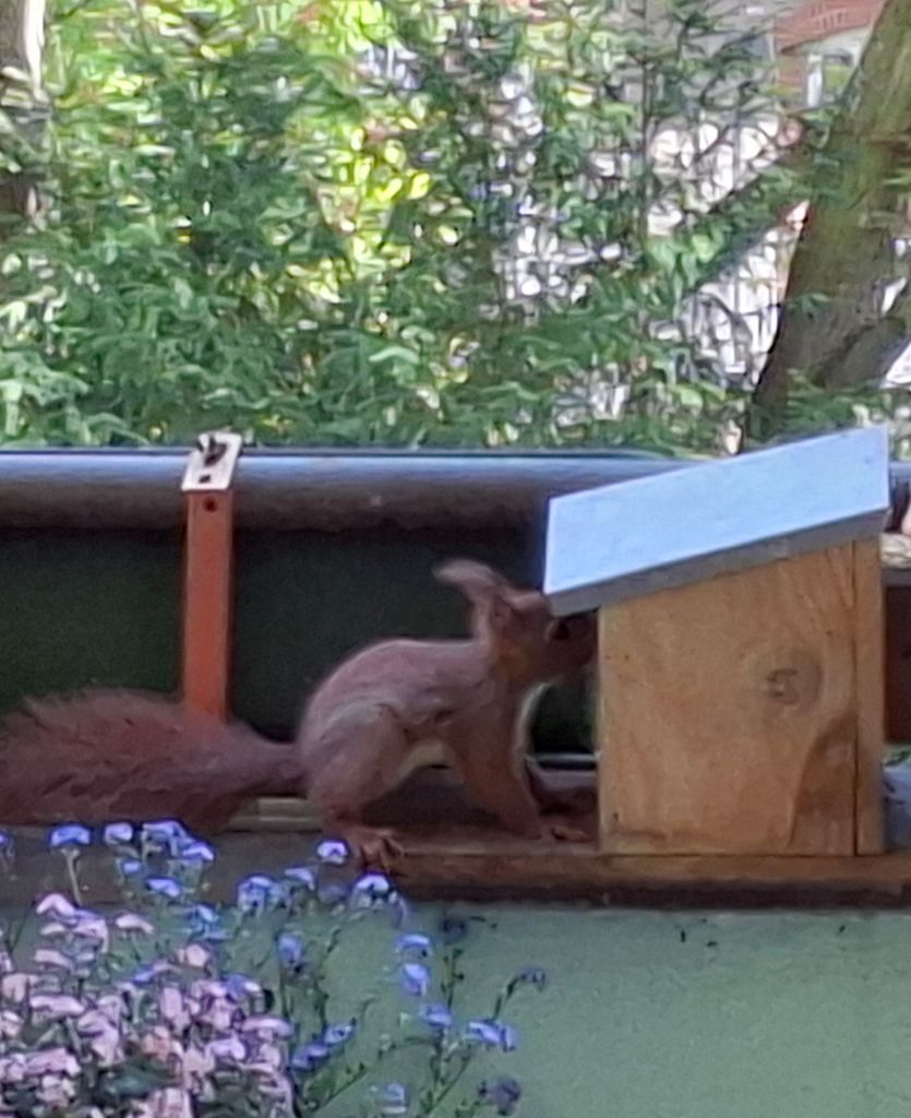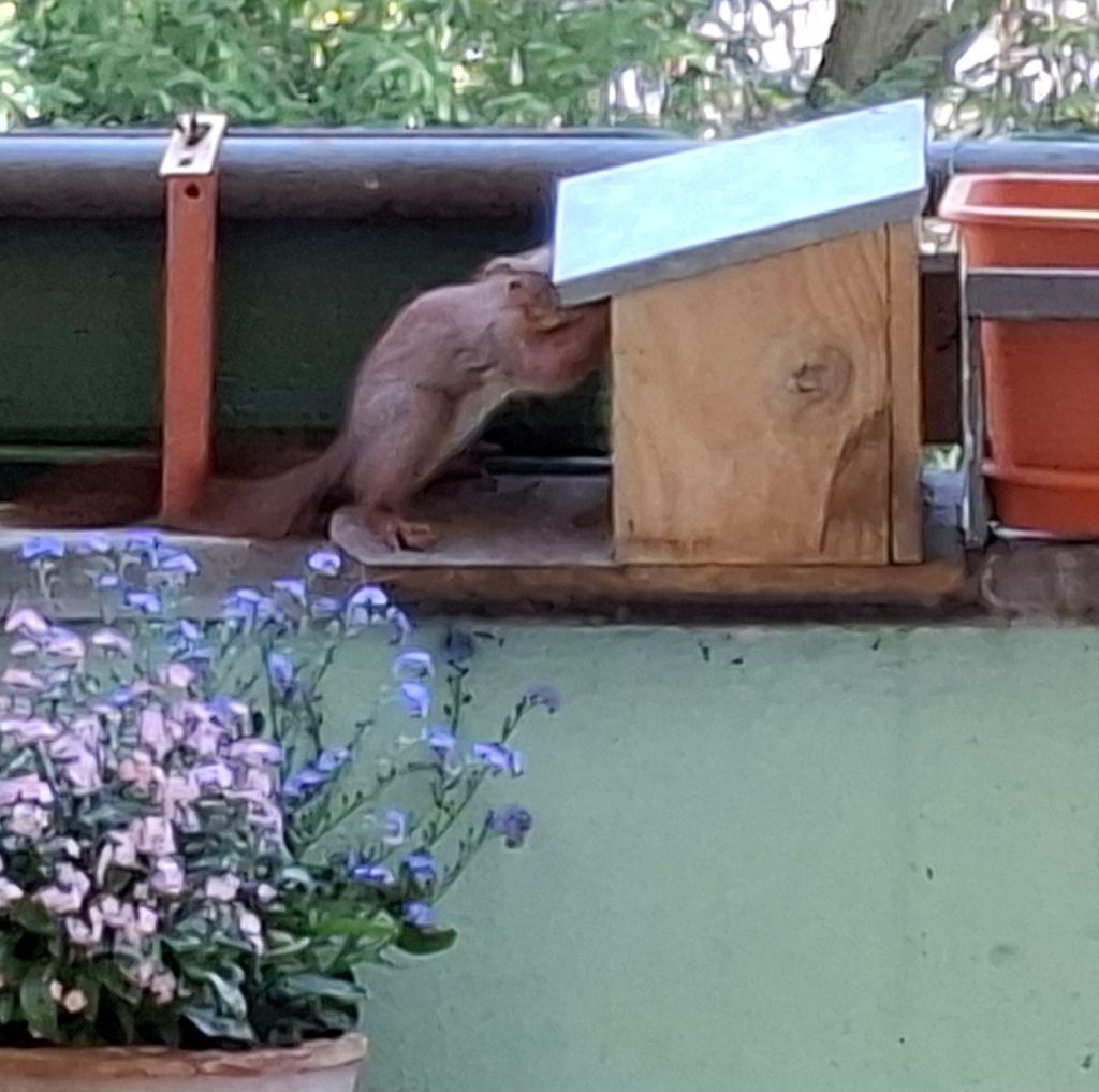… wie man die Futterstation aufbekommt. Armes Kerlchen,  es ist nach mehreren Versuchen frustriert abgehauen.