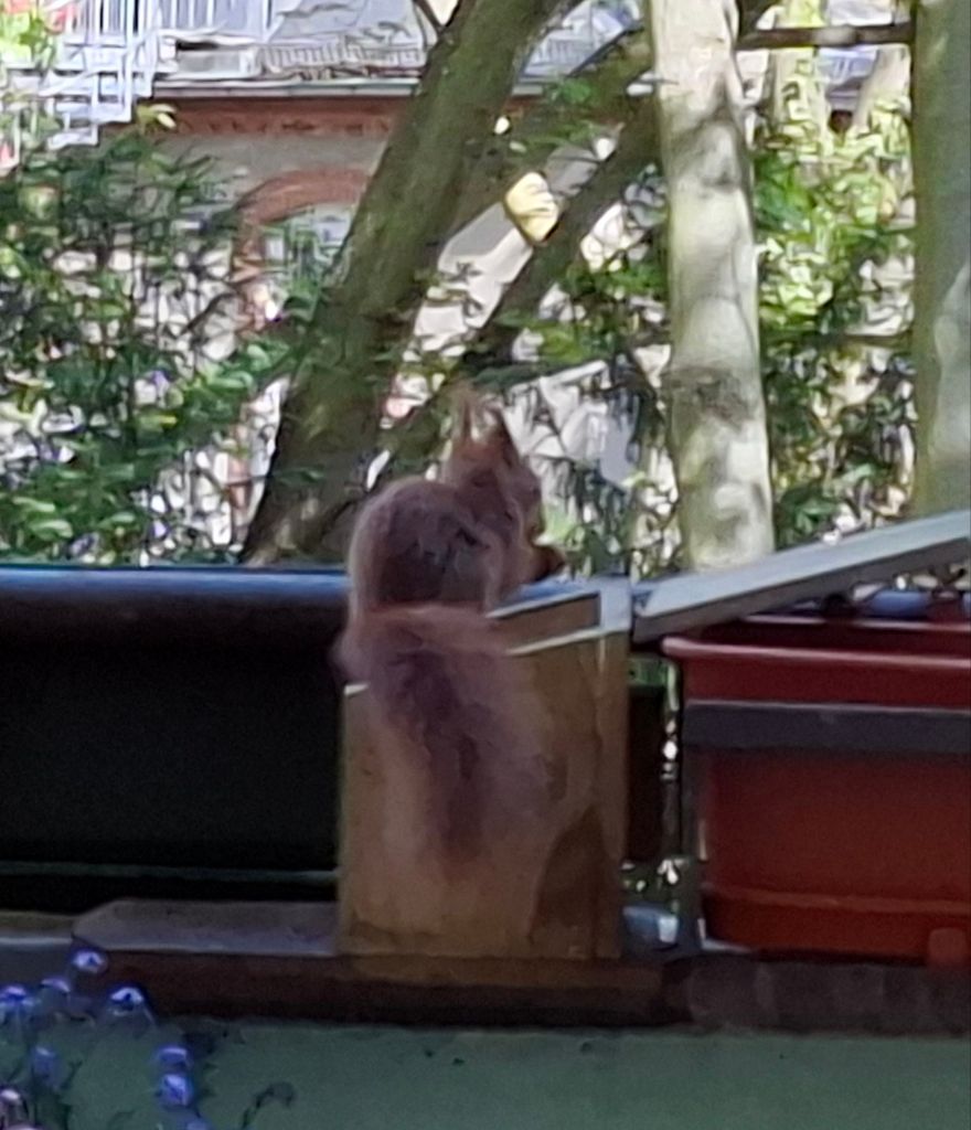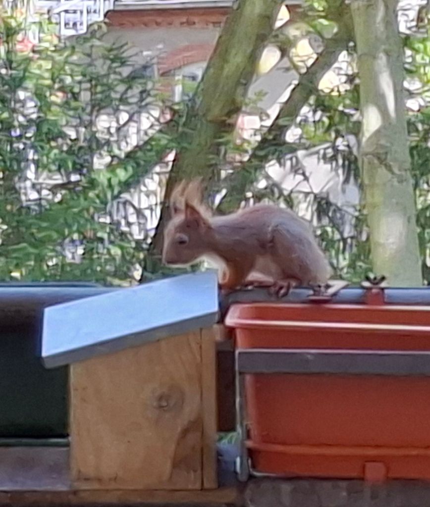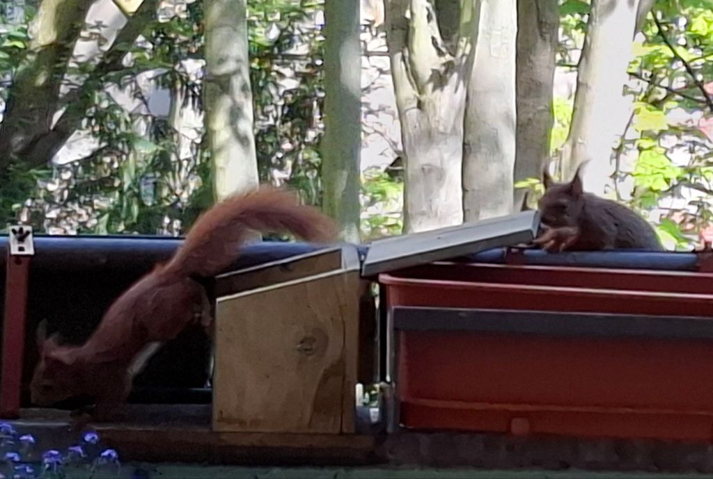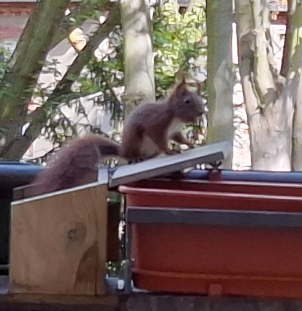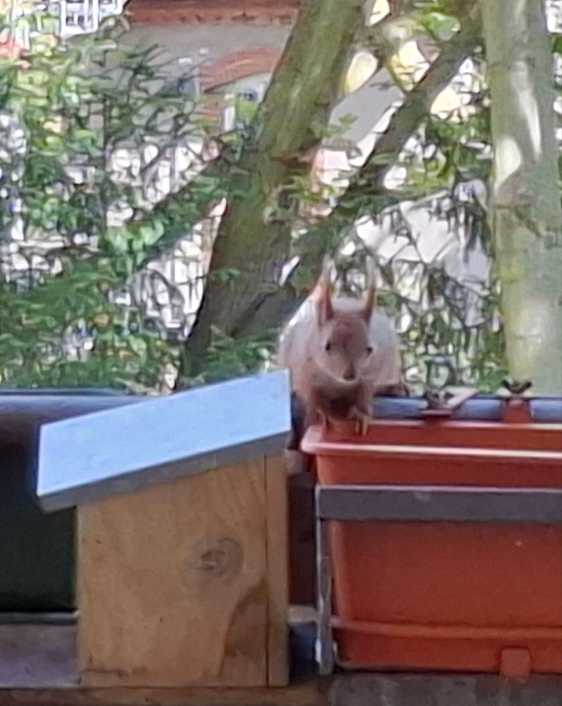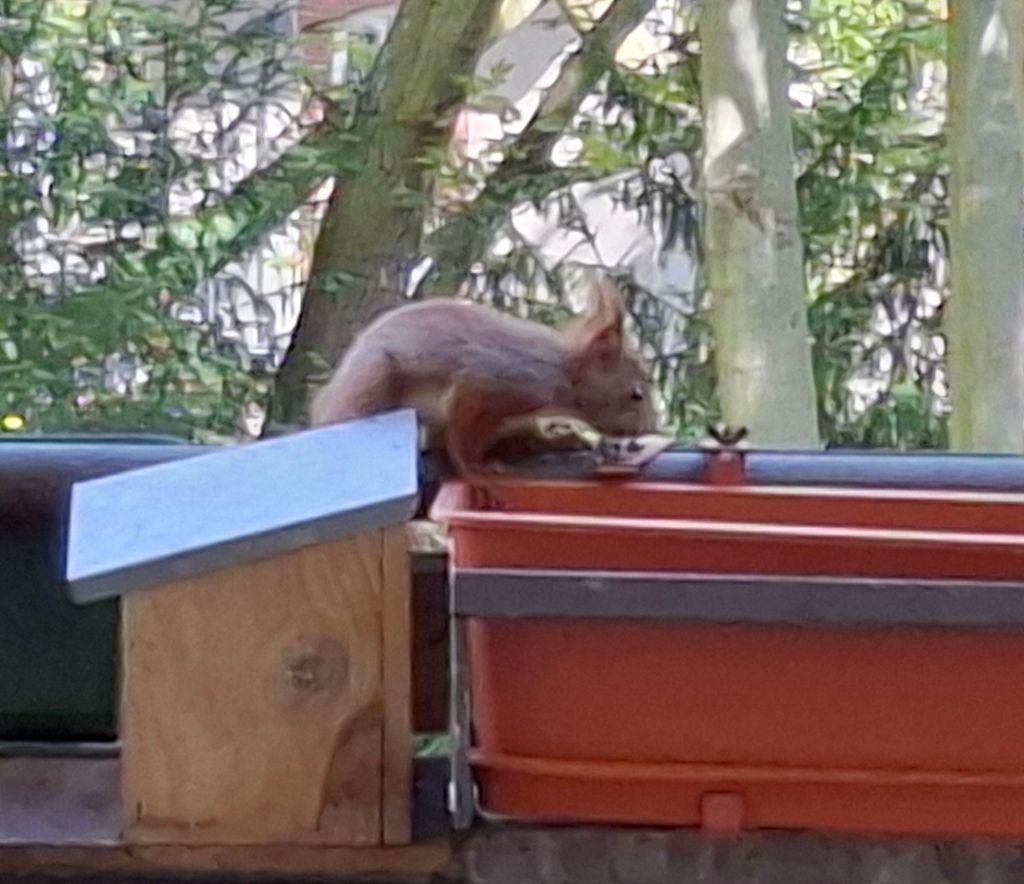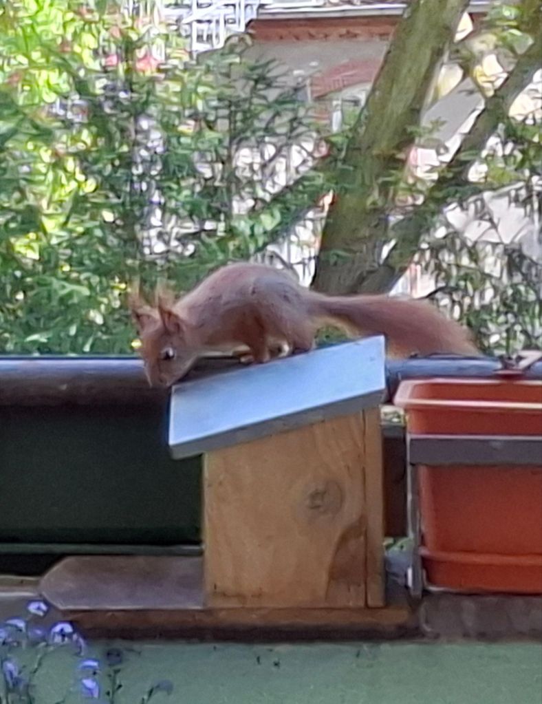 … wie man die Futterstation aufbekommt. Armes Kerlchen,  es ist nach mehreren Versuchen frustriert abgehauen.