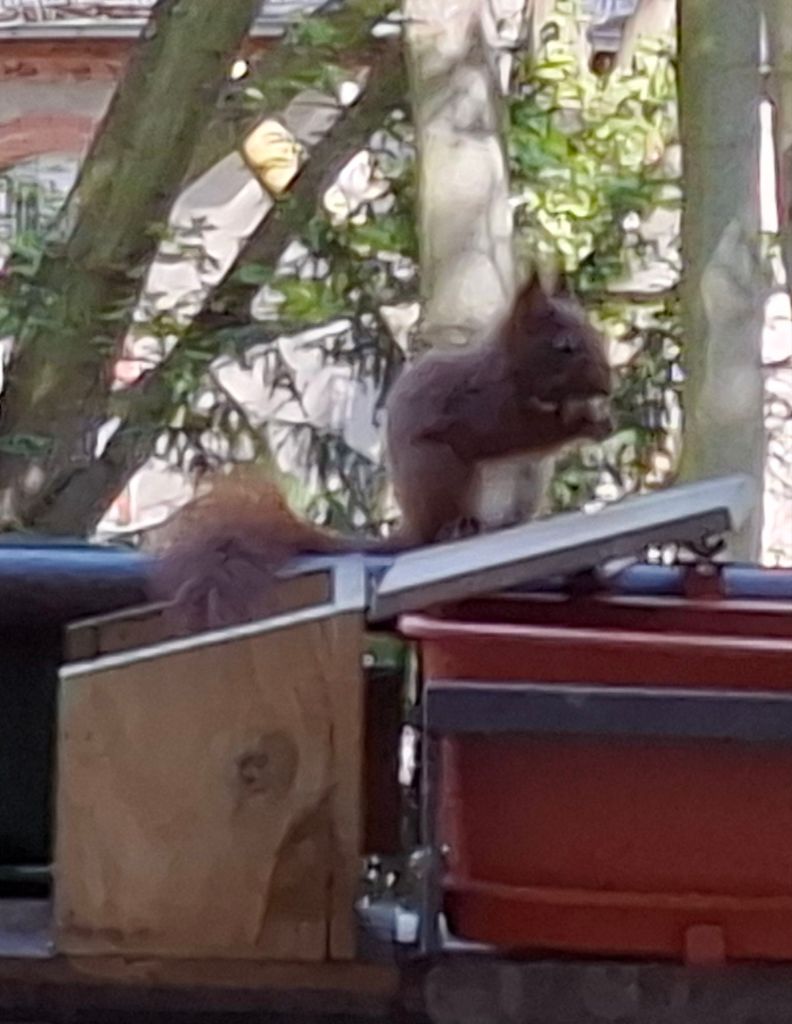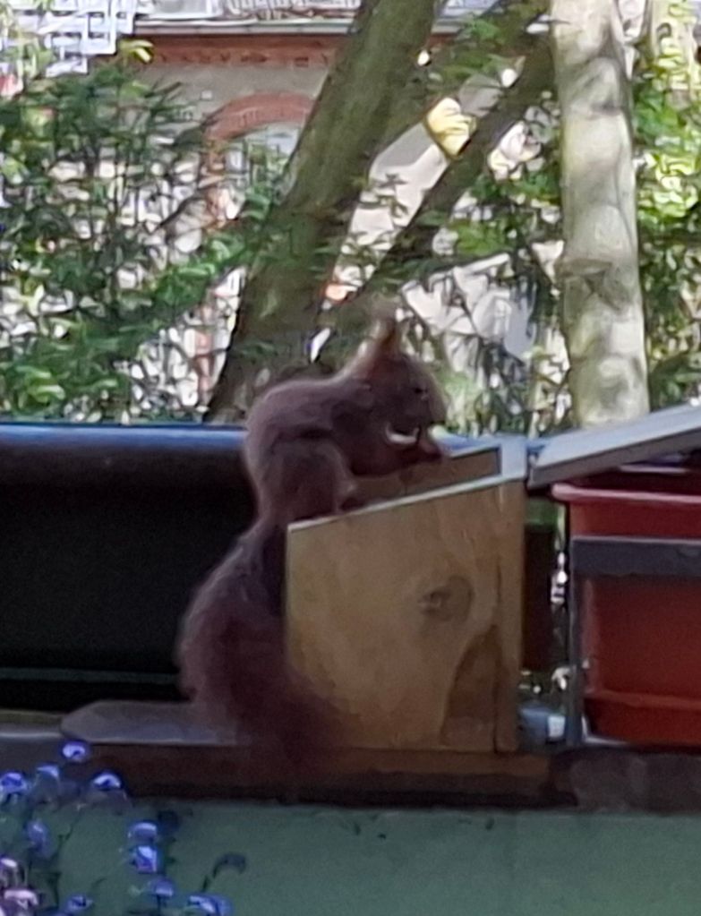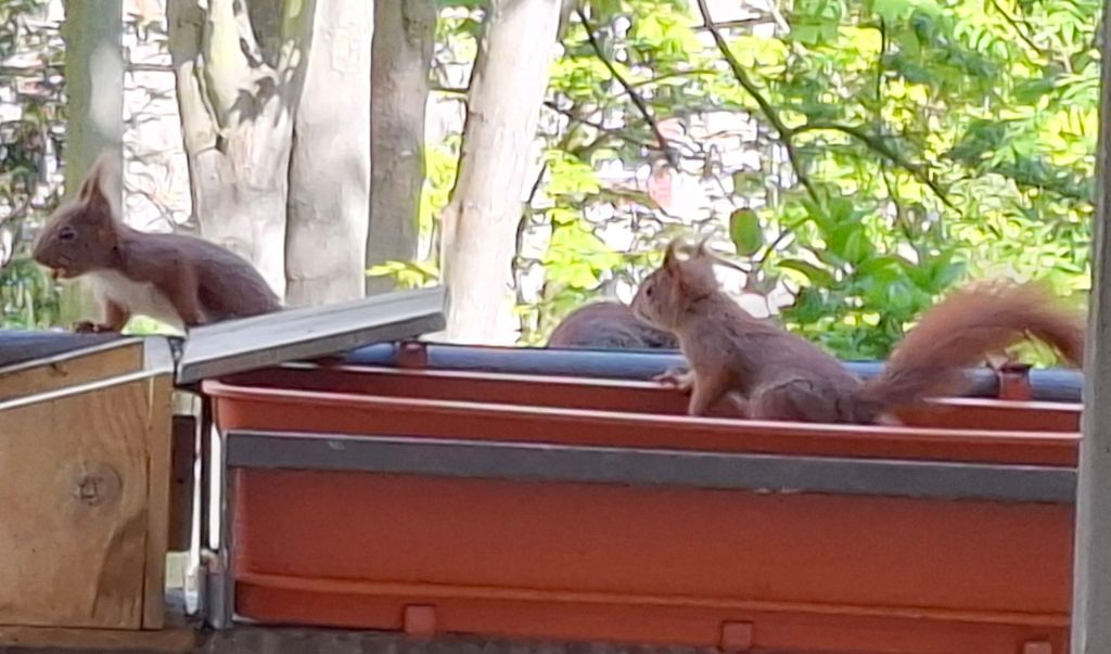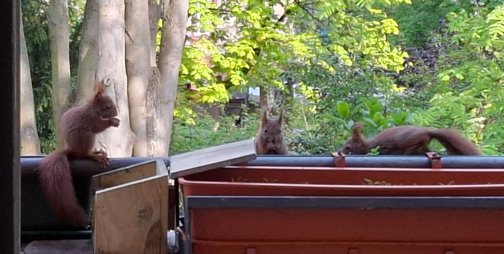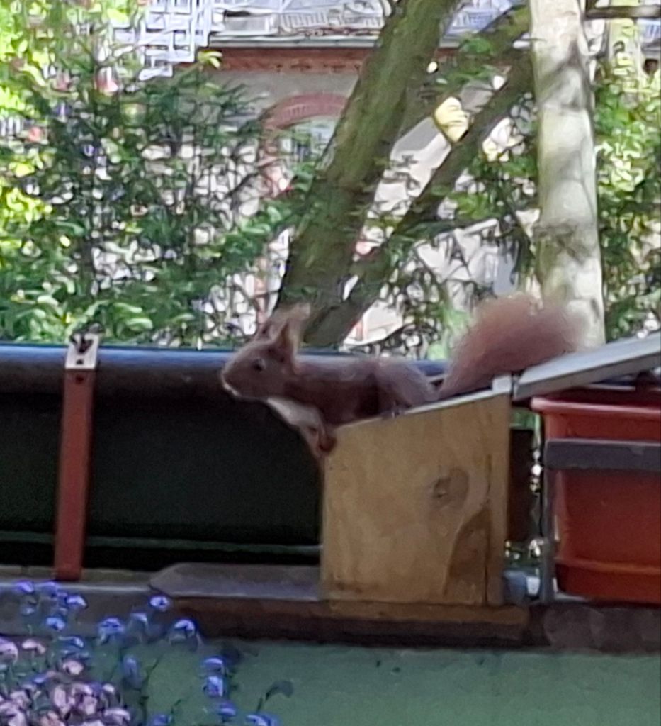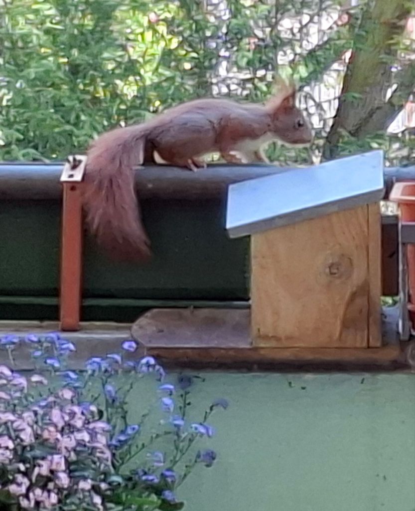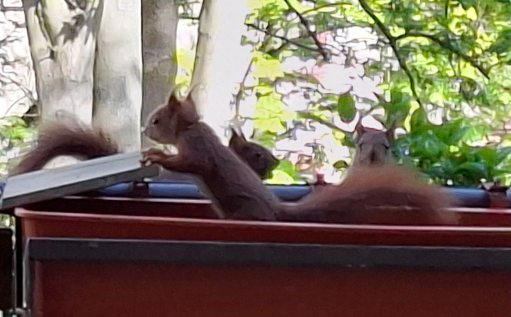 … wie man die Futterstation aufbekommt. Armes Kerlchen,  es ist nach mehreren Versuchen frustriert abgehauen.